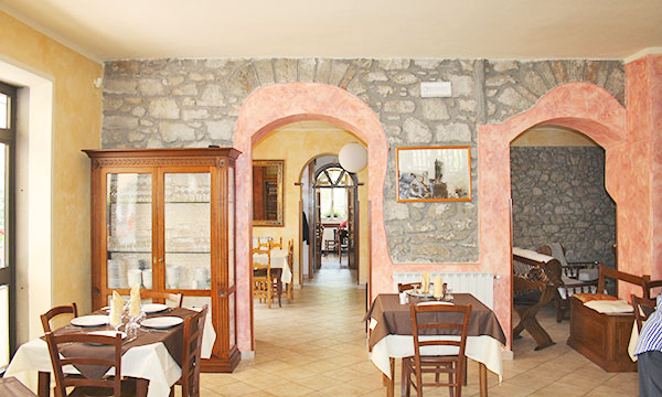 Si può cenare nelle sale interne oppure in una gioiosa terrazza, che domina tutta la vallata di Comano. I piatti interpretano i menù tipici della Lunigiana: i salumi. le torte d'erbi, i tortelloni di verdura, le tagliatelle fatte in casa con i funghi, la polenta con il cinghiale, il pollo ruspante, il capretto in umido. Per terminare un’ampia scelta di dolci tutti rigorosamente fatti in casa.